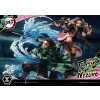 The elder brother, who became a demon slayer to restore his sister’s humanity. The younger sister, transformed into a demon, yet fighting to protect human lives. Their struggle together has been brought to life in 1/6 scale. Nezuko soars in midair, Tanjiro plants his feet firmly on the ground, and the Seisei Ruten (Water Dragon of Constant Flux) spirals around them, creating both vertical height and dramatic depth. A moment of tension is captured in dynamic form.