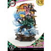 The elder brother, who became a demon slayer to restore his sister’s humanity. The younger sister, transformed into a demon, yet fighting to protect human lives. Their struggle together has been brought to life in 1/6 scale. Nezuko soars in midair, Tanjiro plants his feet firmly on the ground, and the Seisei Ruten (Water Dragon of Constant Flux) spirals around them, creating both vertical height and dramatic depth. A moment of tension is captured in dynamic form.