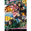 Every sculpted detail and every layer of paint merges the impression of the anime with the tangible qualities of three-dimensional form. The portraits of both Tanjiro and Nezuko are intricately crafted to convey their dignified presence while retaining the gentle softness of their youth. Their flowing haori and kimono are carefully sculpted with iconic patterns, painted with a "2.5D" approach that preserves the anime aesthetic. The breathing effect, finished in beautiful water tones, along with the heavy realism of wood and steel on the base, showcase the craftsmanship invested in every element.