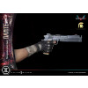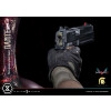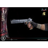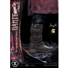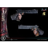 Prime 1 Studio’s tailors have been able to painstakingly recreate Dante’s long coat in exacting detail due to this statue’s immense scale. Inspect each and every stitch, and you won’t be disappointed. Marvel at the threadbare qualities of his Henley shirt, created to call back to his signature look from the game. We’ve employed real, metal hardware in his clothes: from the rivets on his shoulders to the zippers on his sleeves. Even his finely-tailored pants have a belt with a gleaming buckle and functional riveting. Not to be outdone by the fine craftsmanship of the clothing, Dante’s paints have taken advantage of his grand scale as well. We’ve been able to tone his skin to a lifelike degree like never before, rendering his face and arms as realistically as we could to match the realism of his clothes. And by painting his weapons with a realistic quality, we’ve made sure to bring out the visual weight of not only Rebellion, but also of Ebony and Ivory.
