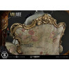 smirk faithfully replicate the impression she leaves in the game as she scornfully looks down on those who dare enter Castle Dimitrescu. Between her left fingers rests an ornate crimson cup for her wine... or maybe something