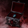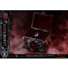 The skull-shaped box that houses this piece is an original Prime 1 Studio design, inspired by motifs closely tied to the Skull Knight—skulls, swords, and curling rose vines. Velvet-like fabric lines the interior, while an LED-lit Brand of Sacrifice offers a glimpse into the abyss.