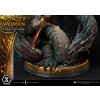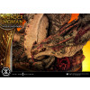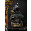 Wonder Woman is locked into battle with the Three-Headed Hydra. She is in a dynamic attack pose, weapon in hand, armor beautifully glistening, with an extremely focused, determined look on her face. Her hair is flowing in the wind as she is locked in to strike the insanely detailed Three-Headed Hydra. The Hydra has already felt Diana’s sword once and has some noticeable battle damage. Its open mouth is leaking with venom, and its eyes are poised on Wonder Woman, you can feel the tension through the statue!