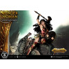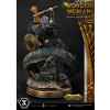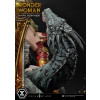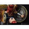 Wonder Woman is locked into battle with the Three-Headed Hydra. She is in a dynamic attack pose, weapon in hand, armor beautifully glistening, with an extremely focused, determined look on her face. Her hair is flowing in the wind as she is locked in to strike the insanely detailed Three-Headed Hydra. The Hydra has already felt Diana’s sword once and has some noticeable battle damage. Its open mouth is leaking with venom, and its eyes are poised on Wonder Woman, you can feel the tension through the statue!