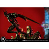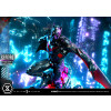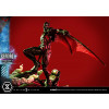 While the classic Batman Beyond design was iconic, beautiful, and perfect, our Prime 1 Studio artists endeavored to create a statue that demanded to be looked at. His whole suit features intricate, mech-inspired armor plating, from front to back, top to bottom. This Batman Beyond is full to the brim with complex detail. The armored bodysuit and wings are full of minute details. Intricate paneling, the hexagonal texture of the armor plates, and features that are clearly derived from his classic design are updated for a much more discerning and appreciative audience. Our artists at Prime 1 Studio have delivered a breathtaking sculpt that is painted equally to perfection. The ominous, black paint job of multiple finishes is punctuated with metallic red highlights to show off the complexity of Will’s design.