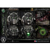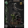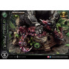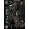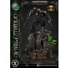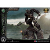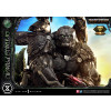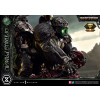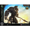 Standing at an impressive 35 inches tall, this statue captures Optimus Primal in his formidable form, each hand gripping a bladed weapon, ready for battle. He stands atop intricately detailed ruins inspired by the film’s terrain. Prime 1 Studio artisans have gone to great lengths to offer you a masterpiece of craftsmanship and detail. Every aspect is designed to captivate and impress, from the meticulously rendered textures of Optimus Primal’s armor and fur to the vibrant, movie-accurate colors. We’ve added LED illumination features in the base of the iconic Transformer logo at the front, as well as Scorponok’s eyes, whose head lies severed at Optimus Primal’s feet, and Optimus’s eyes, for a lifelike glow that enhances his imposing presence.