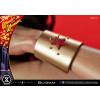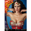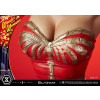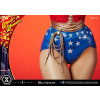We managed to heighten the realism of this Museum Masterline statue by including every stitch, wrinkle, piping, and pleat of her signature costume. We used tried and true methods to render her skin as lifelike as possible in a polystone statue. We took particular attention to replicate all the correct finishes of her eagle symbol, her bustier, her shorts and boots to make the costume as close to authentic as possible. And we round this statue out with her golden tiara, bracelets and magic Lasso of Truth.