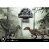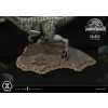 Charlie stands ready to take cues from the pack leader on a Jurassic World-themed earthen base sporting a bronze-finished Jurassic World logo towards the front.