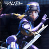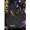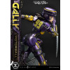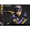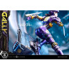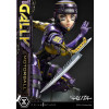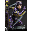 At 19 inches tall, Gally strikes a dynamic pose as she takes a sharp turn on the racetrack. Her armored body shines a rich purple with yellow accents, showing her number 99. With her helmet tightly secured, she dashes forward holding the 40kg motorball in her left hand, and her trusted Damascus blade mounted on her right forearm. You also get to swap out the left hand you wish to display Gally dual-wielding the Damascus blades.
