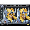 The subtle bluish tone of his Final Bronze Cloth exemplifies the meticulous attention to sculpt and paintwork, where two-dimensional artistry meets three-dimensional form. Two portraits are included: one with Hyoga’s determined gaze, and another with his left eye bandaged. Every detail—from the golden strands of his hair to the natural skin tones—has been faithfully realized to convey his essence.