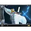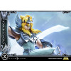 From his Cosmo, Hyoga unleashes the icy force of his signature technique, the "Diamond Dust." The dance he performs when executing this ultimate strike has been brought into three dimensions at 1/4 scale. With both arms spread wide at sharp angles, his right leg lifted parallel to the ground, and his body perfectly steady, the composition forms a striking cross-shaped pose that fuses iconic animation with realistic anatomy, capturing both strength and elegance.