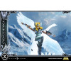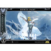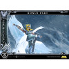 From his Cosmo, Hyoga unleashes the icy force of his signature technique, the "Diamond Dust." The dance he performs when executing this ultimate strike has been brought into three dimensions at 1/4 scale. With both arms spread wide at sharp angles, his right leg lifted parallel to the ground, and his body perfectly steady, the composition forms a striking cross-shaped pose that fuses iconic animation with realistic anatomy, capturing both strength and elegance.