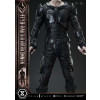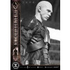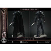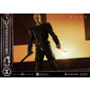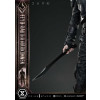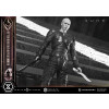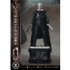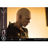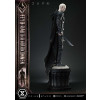 Sunken eyes casting a mysterious shadow, pale skin, and a refined yet unsettling face—this portrait is unmistakably Feyd-Rautha, brought to life with uncanny likeness to Austin Butler, who portrayed him on screen. His black and white blades form sharp edges and graceful curves, while the combat suit is fully recreated down to the worn armor plates and woven fabric textures. The removable cape is made of real fabric, producing natural drape and flow. The base beneath his feet combines the deserts of Arrakis with the emblem of House Harkonnen for a weighty finish.