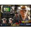 The specially designed base is composed to reflect his outlaw way of life. Dogmeat standing close at his side. A weathered Nuka-Cola refrigerator. A television with an LED-lit screen showing pre-war star Cooper Howard. Each element draws a story into your display.