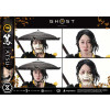Atsu journeys across the vast northern land to hunt down the Yōtei Six who killed her family. This 1/4 scale statue captures her dual blades—tempered by an unshakable composure forged in brutal trials, and driven by a vengeance she cannot erase. Her dignified yet shadowed visage is rendered with naturally lustrous eyes and finely detailed skin texture. A well-worn hat is detachable, and an additional head part is included to portray her unmasked, without the Onryō mask. From the Onryō armor that conveys the feel of silk, to her mother’s shamisen, the obi bearing the names of her foes, and the fur pelt made with faux-fur material—every element pursues realism.