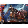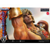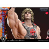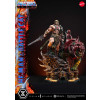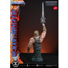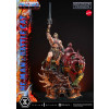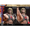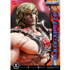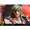 His wild hair and striking portrait, along with the finely honed body that embodies “the Most Powerful Man in the Universe,” blend realistic detail with subtle stylization. The massive Power Sword, his battle harness, and the shoulder armor and loincloth accented with fur are all crafted with rich, tactile surfaces.