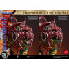 Battle Cat’s luxuriant fur is shaded with carefully calculated light and shadow, bringing a sense of life to his imposing frame. Intricately engraved armor, eyes and fangs filled with fighting spirit—all come together to suggest a story within his powerful presence.