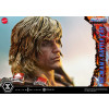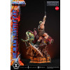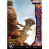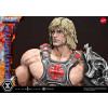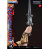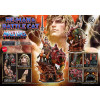 His wild hair and striking portrait, along with the finely honed body that embodies “the Most Powerful Man in the Universe,” blend realistic detail with subtle stylization. The massive Power Sword, his battle harness, and the shoulder armor and loincloth accented with fur are all crafted with rich, tactile surfaces.