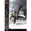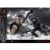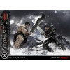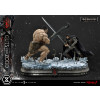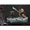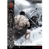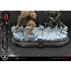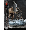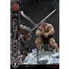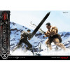 Prime 1 Studio has imbued this majestic 20-inch diorama environment with dynamic action as these strategic and skillful combatants make their thundering impressions in the snowy landscape, surrounded by tribute swords lovingly crafted by Rickert. Our deft sculptors have imbued Zodd with a monstrous physique, a grim visage, and a menacing stance. We have sculpted Guts to hold back Zodd’s attack with skillful ease, illustrating the very moment Guts’ Dragonslayer has started to crack Zodd’s sword. We have equipped Zodd with a synthetic fur loincloth, and for Guts, every detail, dent, and ding in his armor is faithfully recreated. Our painters have rendered this diorama as closely as we can to Kentarou Miura’s vision of this epic battle.