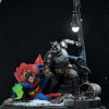 Coming in at a whopping 43 inches tall, our diorama statue freezes time at the exact moment Batman, decked out in state-of-the-art, anti-metahuman armor, lands a jaw-breaking punch on Superman! Situated in Crime Alley, at the site of Bruce Wayne’s parents’ murder by Joe Chill, our diorama includes insane detailing created by our talented studio artists: Superman clutches an arrow emitting Kryptonite gas, shot by a one-armed Green Arrow; Batman, plugged directly into Gotham City’s power grid for his next powerful attack on Superman, the fabric texture of Superman’s iconic costume and the gritty reality of the world they are fighting in.