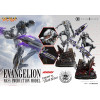 Featured in "Neon Genesis Evangelion: The End of Evangelion", this aberrant series of Eva units left countless viewers scarred. This statue accentuates their soulless, uncanny presence through concept design by Josh Nizzi. While honoring the original organic form, it incorporates intricate details such as panel lines and internal mechanisms. The white-based color scheme is complemented by metallic, muted silver and accented with a warning yellow. The purple-hued sword is imbued with a sharp tension within its delicate sculpt.