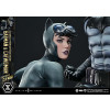 The muscular physique of Batman evokes anatomical precision, while optional parts allow him to hold his grapnel gun. Catwoman’s form, defined by carefully studied bone structure and muscle balance, captures an elegant silhouette. Her whip has been meticulously crafted for a sharp yet fluid impression. Both characters’ costumes feature deep, dark tones emphasizing gloss and shadow, and the base—engraved with ominous motifs—adds an air of grandeur.