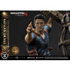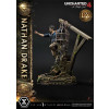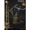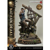 In this thrilling 27 inch tall statue, Prime 1 Studio artists have posed an extremely acrobatic Nathan Drake in the midst of yet another exciting adventure. Nathan hangs off a wooden beam, supporting a cage inhabited by a long dead crewmate of the famed pirate, Henry Avery! Nathan aims his trusty sidearm at an unknown combatant, who is bound to lose his life in this encounter!