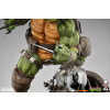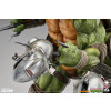 The Raphael Statue is fully sculpted to capture a blend of realism and classic comic book style, with detailed textures and painting to bring the butt-kicking turtle to life in three dimensions. Raph’s portrait and shell feature battle scars from his time training under Master Splinter and alongside brothers Leonardo, Donatello, and Michelangelo. He wears brown wraps on his arms and feet, elbow and knee pads for protection, and a utility belt around his midsection. His snarling face is highlighted with his signature red bandana and white eyes, reminiscent of his early comic appearances.