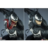 The dynamic Venom 1:3 Scale Statue is fully sculpted from head to toe with detailed musculature and black symbiote tendrils snaking off of his body. The statue has white web shooters, eyes, and spider-symbols on his back and chest with three-dimensional depth adding shadows to the gruesome design. The statue includes two portraits; a grinning portrait that shows off his sharp-toothed smile, and an open-mouthed portrait where Venom displays his twisting tongue, eager to devour enemies like the tasty symbiote snacks they are.