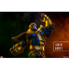 The polyresin Thanos (Classic Version) Statue measures 23” tall, as the Mad Titan stands triumphantly atop the wreckage of Avengers Tower. Inspired by his classic comic book appearance, Thanos wears a fully sculpted vibrant blue bodysuit with detailed metallic yellow armor. Wielding the mighty Infinity Gauntlet, which includes a light-up feature for the Infinity Stones, this nigh-unstoppable villain will prove that Earth’s Mightiest Heroes are no match for the ultimate cosmic overlord.
