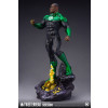 The John Stewart Maquette measures nearly 20.5” tall, 8.75” wide and 7.25” deep when fully assembled - from the bottom of base to the tippy-top of the swap out “Space Blaster” (included with the Standard Edition). He’s about 17” tall without the “Space Blaster”. This fully sculpted polyresin statue comes standing next to a recently taken down Qwardian Power Battery as John works to keep his sector safe from the Sinestro Corps.